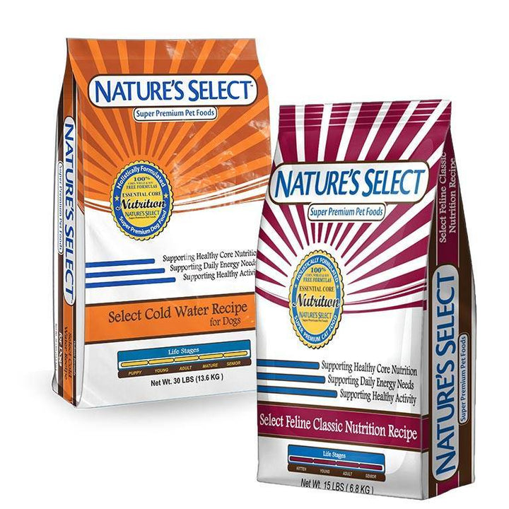 Save on premium nutrition for your entire fur family! Our exclusive bundle combines our Select Cold Water Recipe dog food with our Select Feline Classic Recipe cat food - perfect for homes with both dogs and cats.