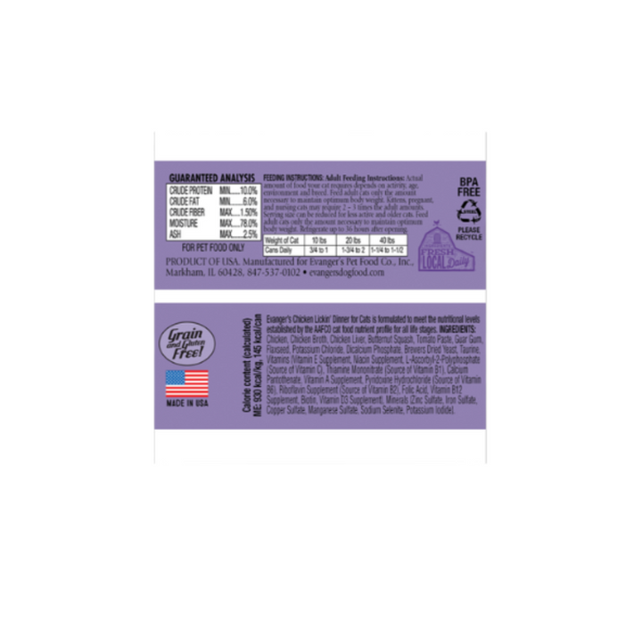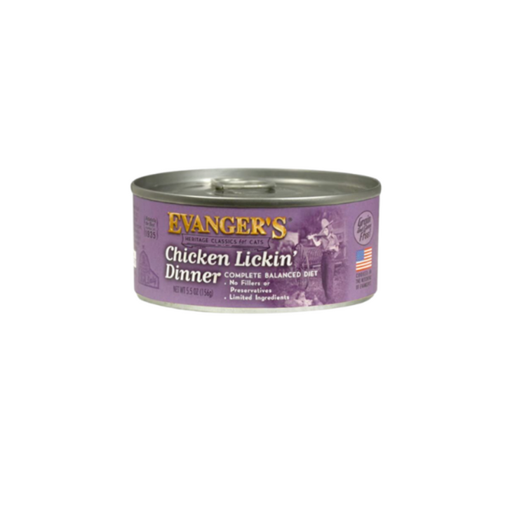 Evanger's Chicken Lickin' Dinner 5.5oz cans is formulated to meet the nutritional levels established by the AAFCO nutrient profiles for all life stages.