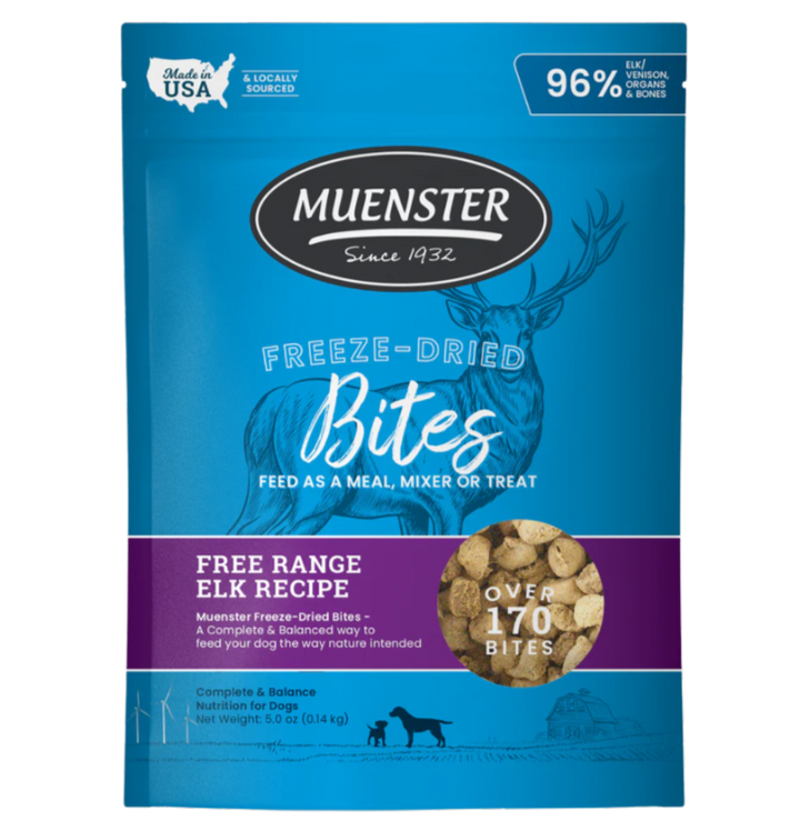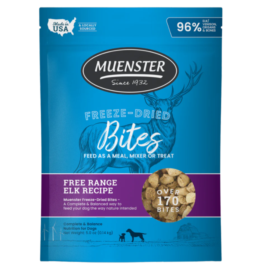 Muenster Freeze Dried Elk Bites - Dog Food, Treat, Mixer or Topper (5oz) - Grain-Free
