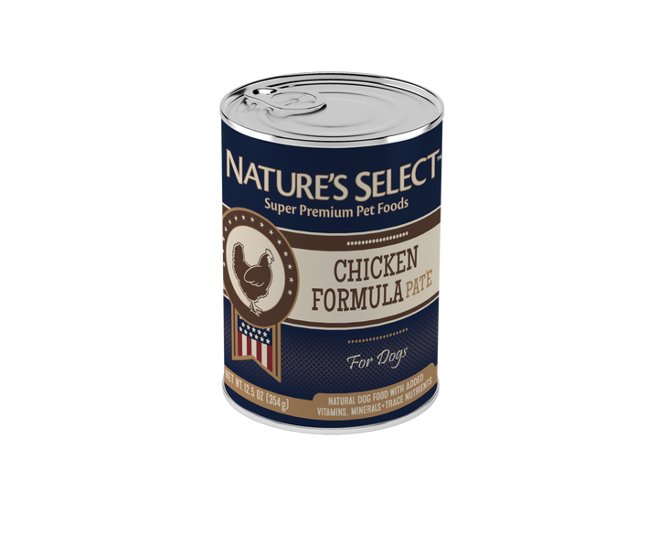 Treat your dog to our Nature's Select Chicken Formula Paté - a premium, nutrient-rich wet dog food featuring real chicken as the primary ingredient.