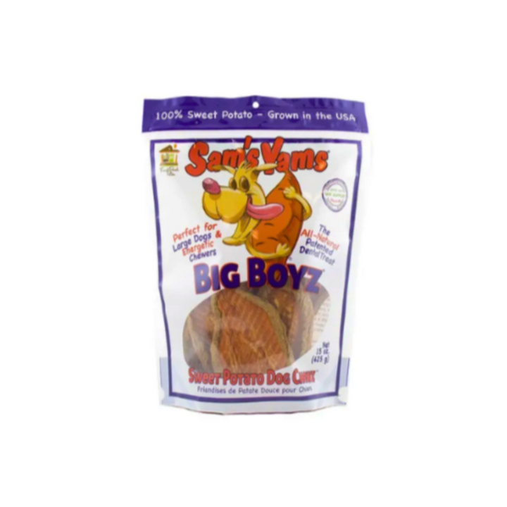 Sam's Yams® provide the perfect combination of dental benefits and tasty enjoyment your dog craves. The natural fibrous texture helps clean teeth while giving your pet a satisfying chewing experience that lasts.